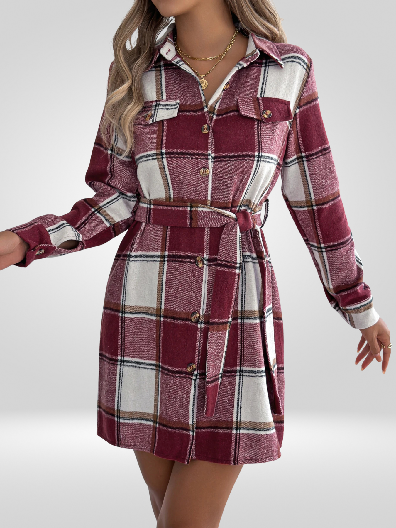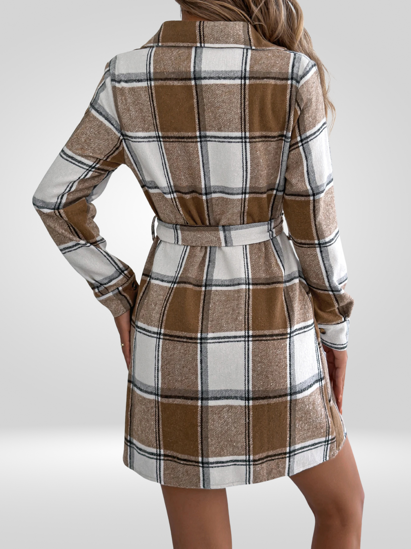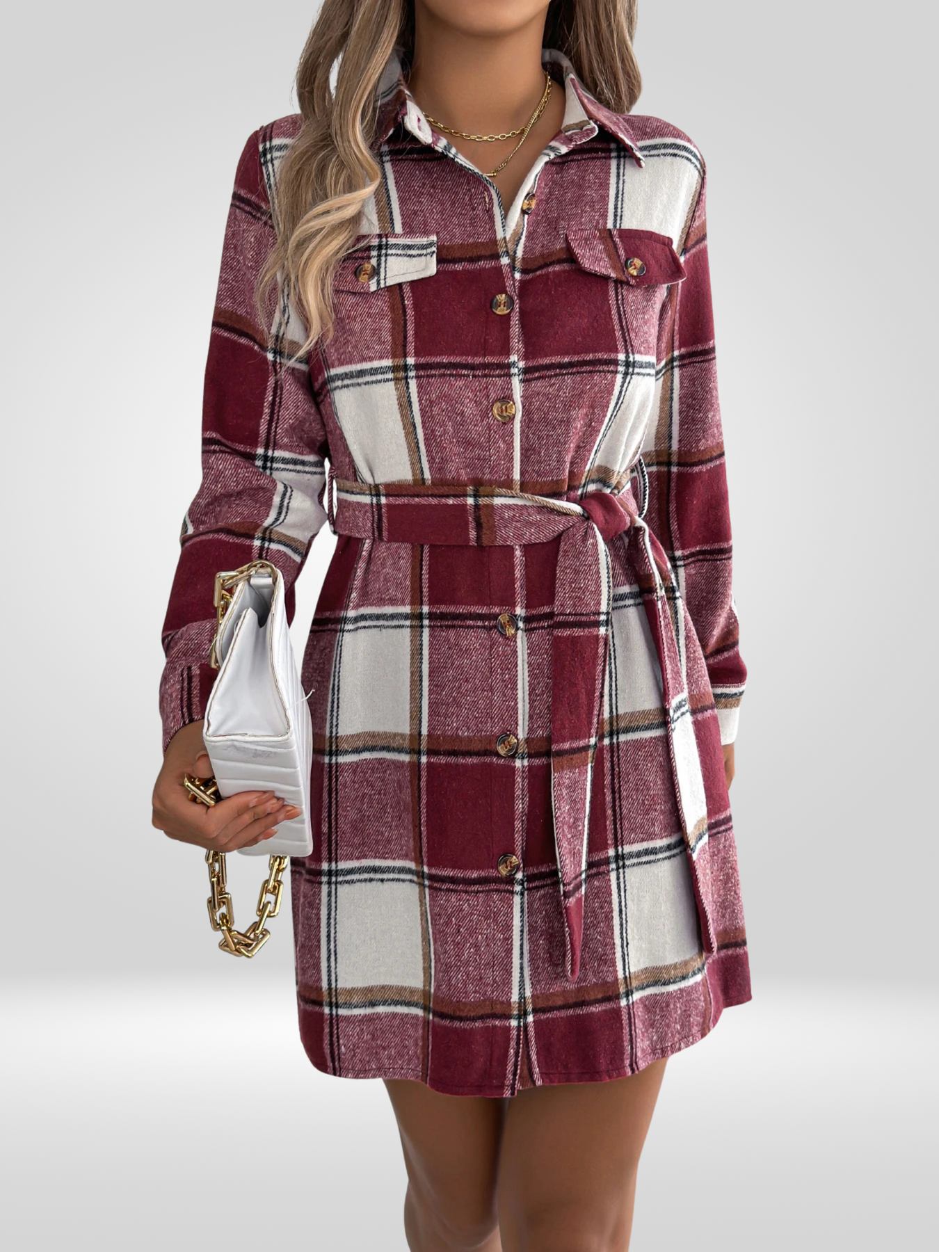 Luna Rosa is a refined shirt dress in a soft checkered fabric, featuring a detachable belt that lets you choose the fit – loose or tailored, just the way you want it. The fabric feels comfortable: light enough for warmer days, yet warm enough for mild chills. Designed for the transitional season and wearable with or without leggings.